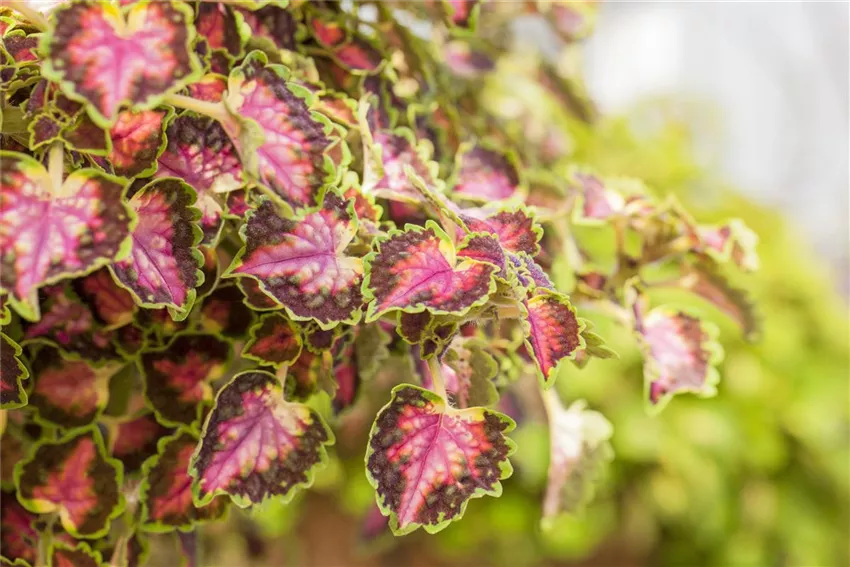 Zwischen den üppigen Flor passen nicht nur blühende Bindeglieder als Begleitpflanzen für Geranien. Da steht die große Welt der Gräser bereit. Zitronengras und Blauschwingel sind nur Beispiele. Aufrecht stehende oder geschmeidig überhängende Stängel, das ist Geschmackssache. Nun bleiben noch Bunt-Nesseln mit ihren individuellen Erscheinungsformen als Begleitpflanzen für Geranien und grüner Klee. Oder darf es noch etwas Besonderes sein? Da gibt es die wundervolle Schmuckblattgeranie mit ihren effektvollen Blättern. Die kleinen Blüten machen sich gegen den Flor der stehenden und hängenden Geranien recht bescheiden aus.